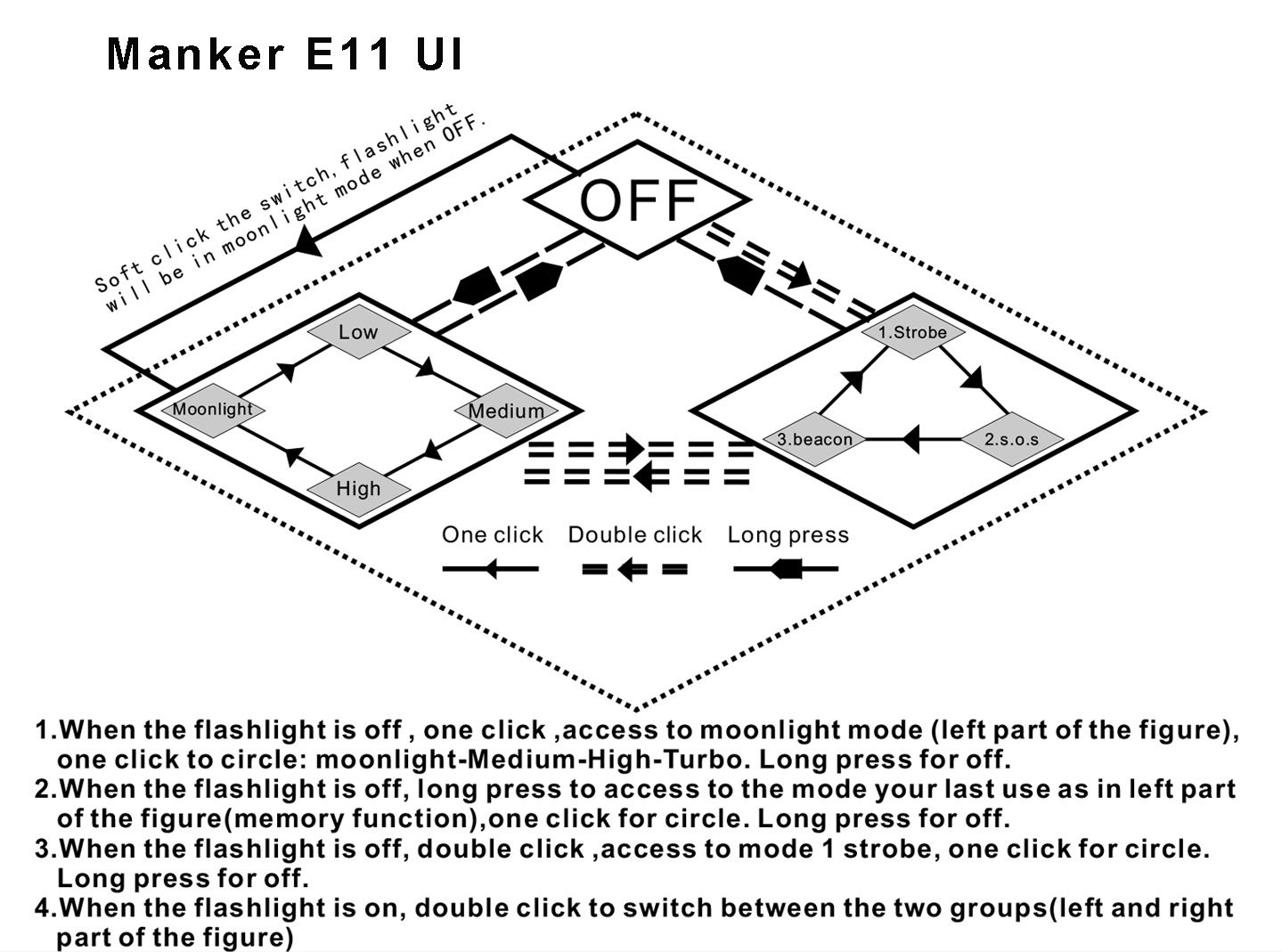 ***Kindly note: We highly recommend you to choose high quality Eneloop Pr AA battery or IMR14500 or high drain unprotected 14500 battery.*** Manker E11