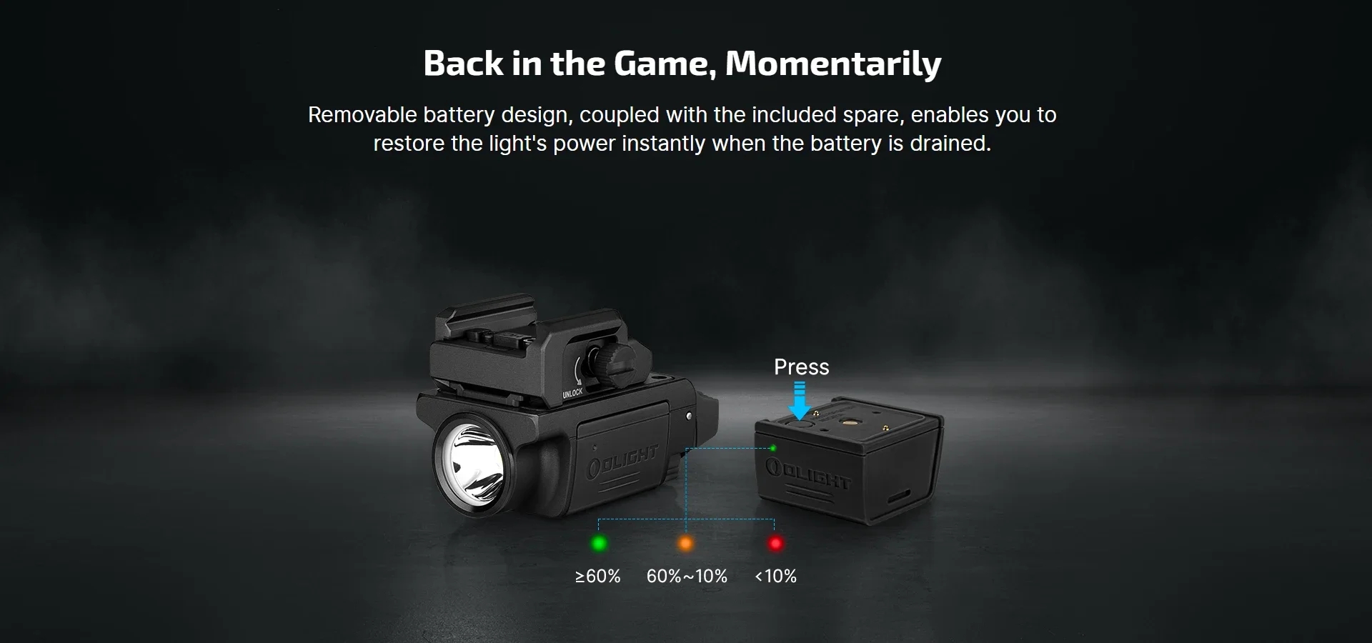 Reload Now, Recharge Later: Featuring a removable battery design, this light allows for swift battery replacement without the necessity of disconnecting the light from your setup.