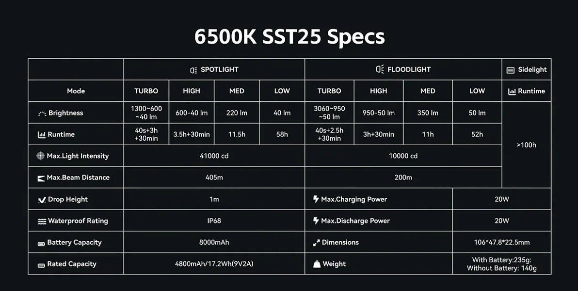 1.Perfectly Sized.Palm-sized, yet shines up to 405 meters with 4,360 lumens.