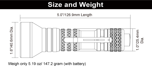 Stainless steel pocket clip works on the pocket, belts, the backpack, and is MOLLE system compatible Forward click tactical tail switch allows for momentary-on