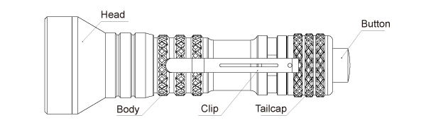 - When the flashlight is turned on, it will default on high mode. Soft press without fully clicking the button for momentary on. Fully press and click for constant on.