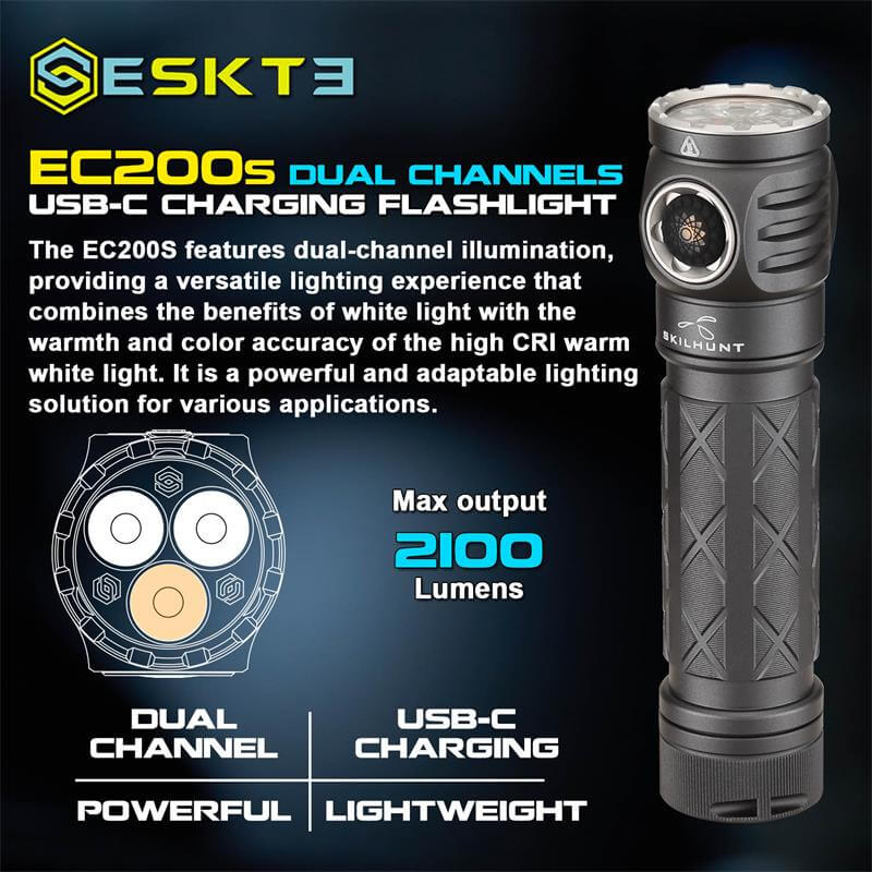 SKILHUNT EC200S 2100+570 lumens Dual Channel USB-C Rechargeable Powerful EDC flashlight