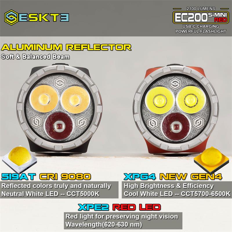 SKILHUNT EC200S-Mini RED 2100 lumens White and Red beam USB-C Rechargeable Powerful EDC flashlight
