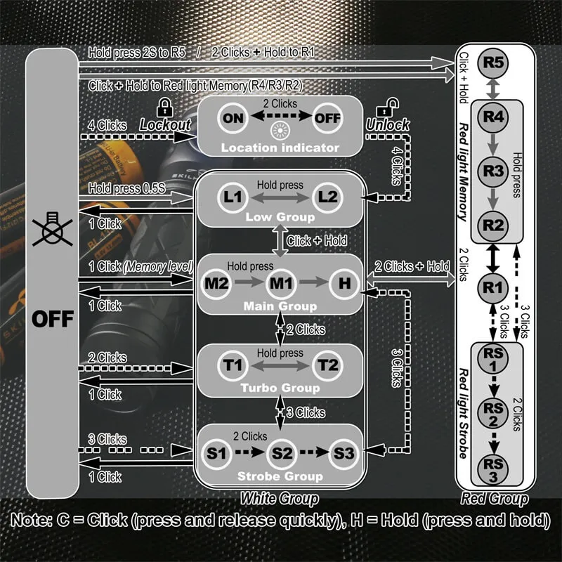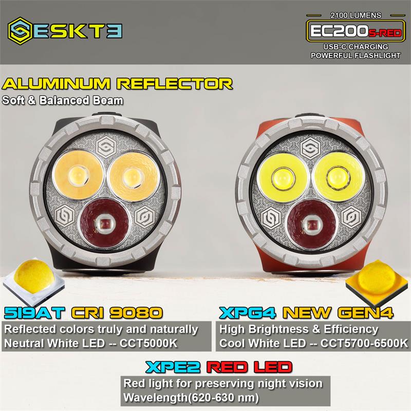SKILHUNT EC200S-RED 2100 lumens White and Red beam USB-C Rechargeable Powerful EDC flashlight