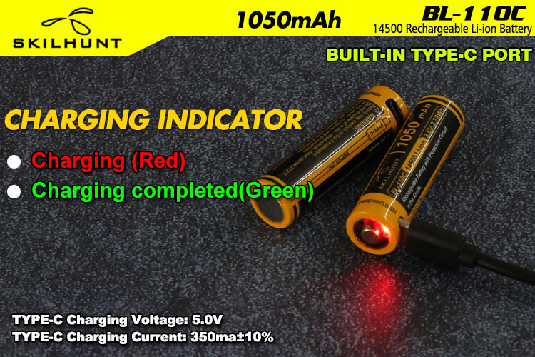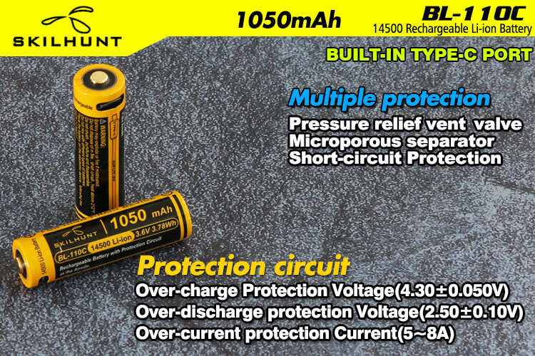 SKILHUNT BL-110C 1050mAh 14500 Built-in USB-C Port Protected Battery