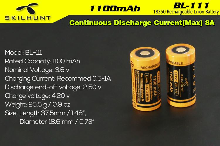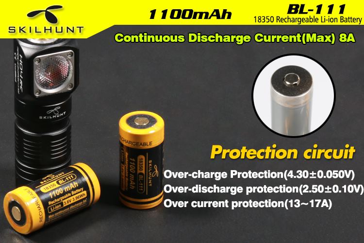 • SKILHUNT  BL-111 1100mAh 18350 Protected Battery