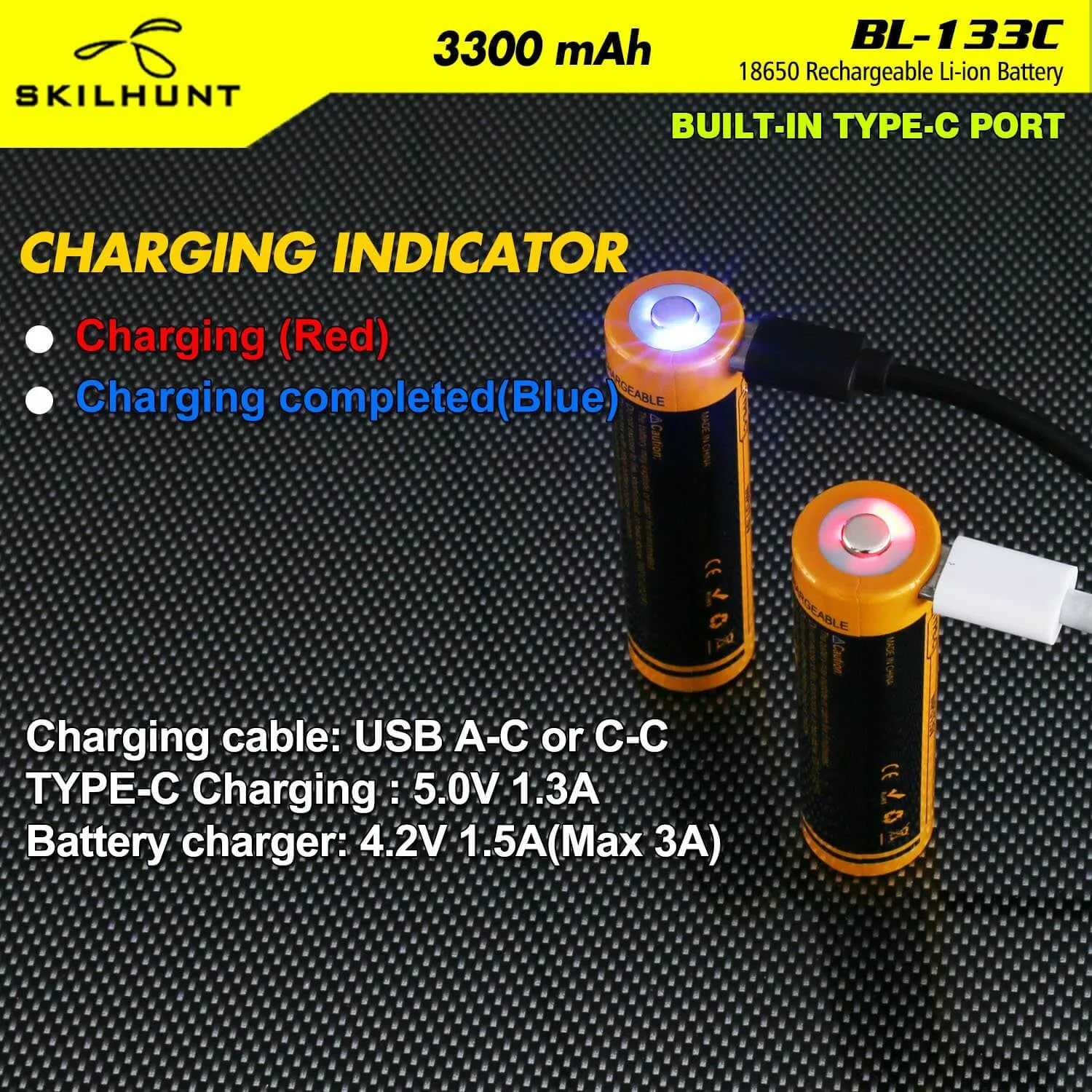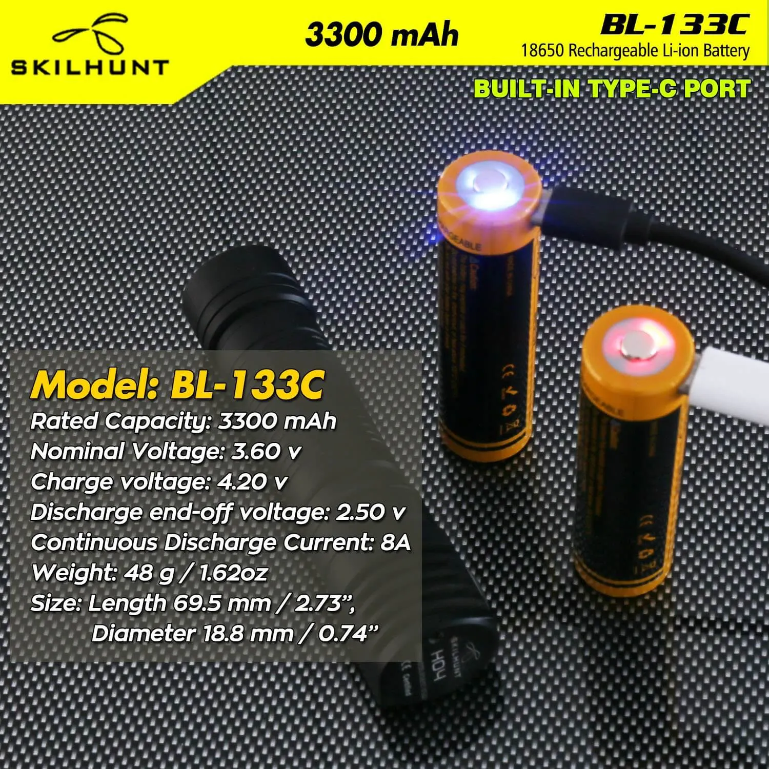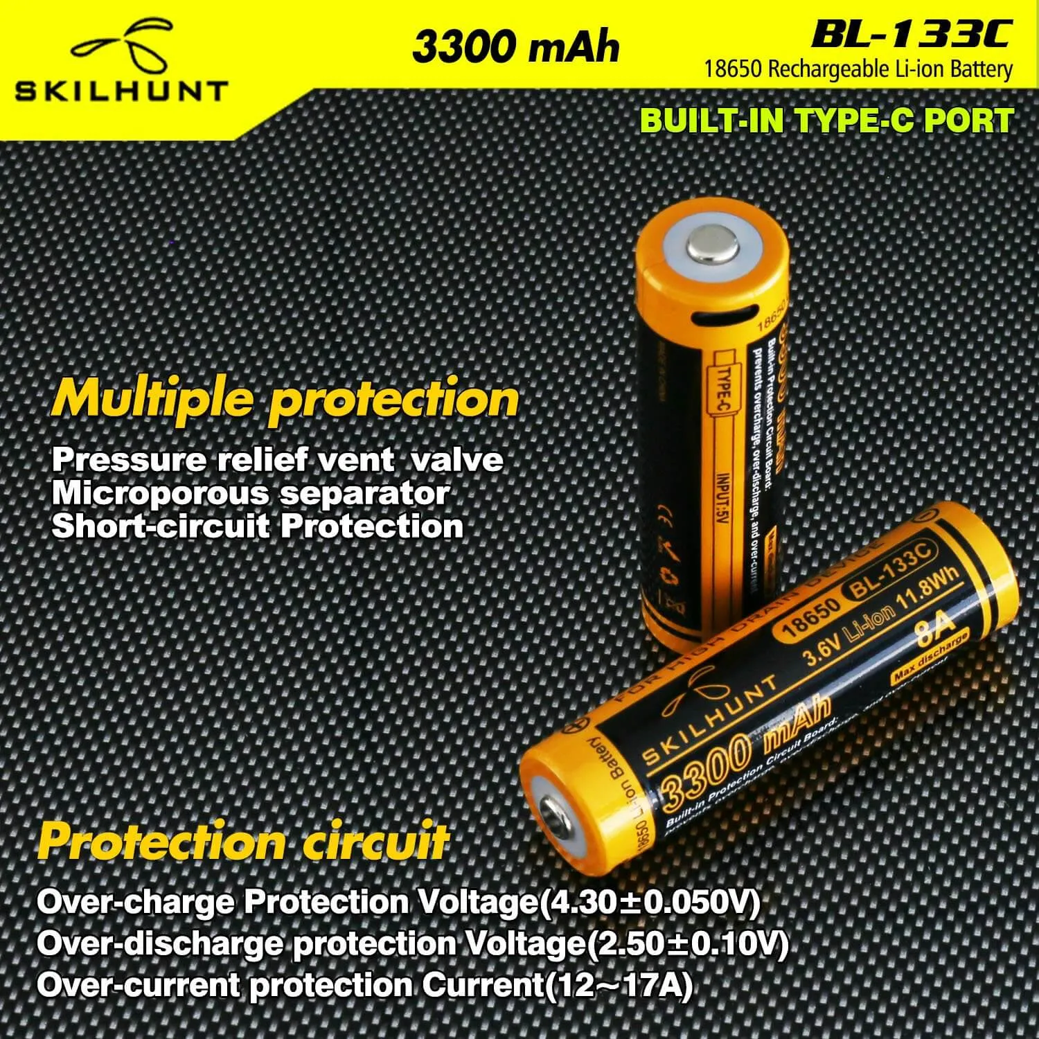 SKILHUNT BL-133C 3300mAh 18650 Built-in USB-C Port Protected Battery