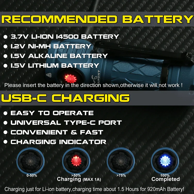 SKILHUNT EC150 AA 14500 USB-C Rechargeable LED Flashlight