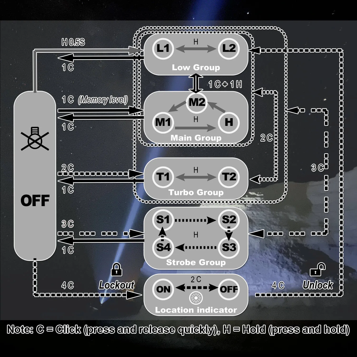 DetailLED:Luminus SFT-40 Cool White 6500KLuminus SFT-40 Neutral White 5000KLuminus SFT-40 CRI95 Warm White 3000KMax output:SFT-40 CW : ANSI 2100 LumensSFT-40 NW : ANSI 1780 LumensSFT-40 WW : ANSI 1300 LumensMax beam distance:902 meters(CW) / 843 meters (NW) / 698 meters (CRI95 WW)Max peak beam intensity:203600cd (CW) / 178000cd (NW) / 122000cd (WW)Quiescent Current :45 μAWaterproof: IPX-8Battery: 1×21700 (Recommended 21700 battery that max discharge current ≥8A)Rated Range: 2.7V ~ 4.2VDimension:L138.5 mm / 5.45″, Head diameter 51.6mm / 2.03 “.Weight: 133g / 4.69 oz (Excluded battery)Accessories: 1*EC500, USB-C Charging Cable, Clip, Lanyard, Spare O-rings, User manual.Battery installationPlease make sure that the positive pole of the battery points to the head of the flashlightwhen you replace the battery.