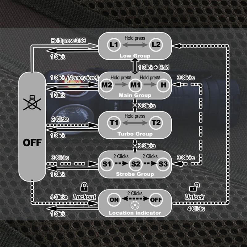 DetailLED: Cool White 5700K~6500K / Neutral White Nichia 519A CRI90 5000K /Warm White Nichia 519A CRI90 3000KMax output: Cool White ANSI 650 LumensMax runtime: 55 daysQuiescent Current : 15~20μA (14500 battery) ; 5μA ( AA battery)Waterproof: IPX-8Impact resistant: 1 MeterBattery: 1×14500 , 1x AARated Range: 0.8V ~ 4.2VDimension: L79.8mm / 3.14″, Head diameter 21.4mm / 0.84 “.Weight: 33 g / 1.16 oz (without battery)Accessories: User manual,Spare O-rings,Lanyard,Clip, Headband, Magnetic Charging Cable .