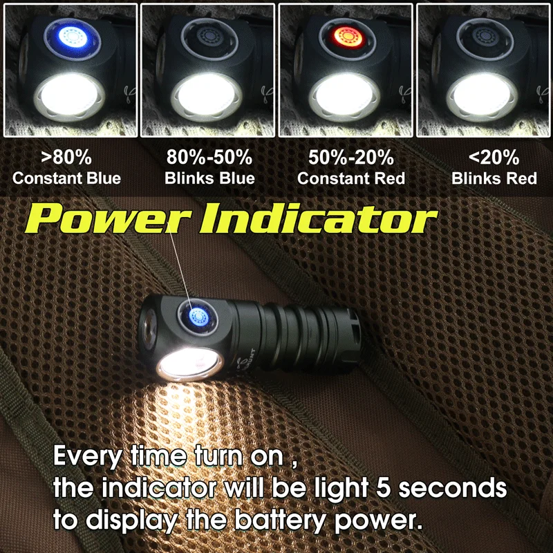 DetailLED: Cool White 5700K~6500K / Nichia 519A High CRI R9080 5000K /4000K/ 3000KMax output: Cool White ANSI 1800 Lumens, Nichia High CRI 5000K ANSI 1300 Lumens, 4000K ANSI 1250 Lumens, 3000K ANSI 1050 LumensMax runtime: /Quiescent Current : 60μAMax beam distance:148m (Cool white ) / 100m (NVSW519AT 5000K) / 97m (NVSW519AT 4000K) /89m (NVSW519AT 3000K) / 63m (Red 1)Max peak beam intensity:5500cd (Cool white) / 2500cd(NVSW519AT 5000K) / 2400cd(NVSW519AT 4000K) / 2000cd(NVSW519AT 3000K) / 1000cd (Red 1)Waterproof: IPX-8Impact resistant: 1 MeterBattery: 1×18350Rated Range: 2.7V ~ 4.2V (Recommended 18350 battery that max discharge current ≥ 8ADimension: L72.7mm / 2.86″, Head diameter 23.5mm / 0.93 “.Weight: 44 g / 1.55 oz (without battery)Accessories: User manual,Spare O-rings,Lanyard,Clip, Headband, Magnetic Charging Cable .