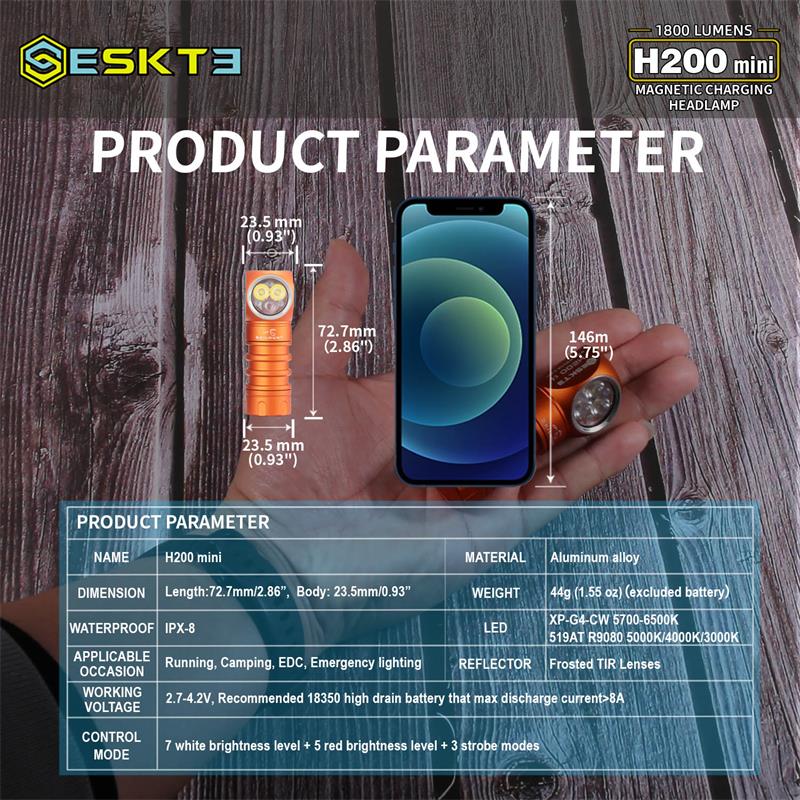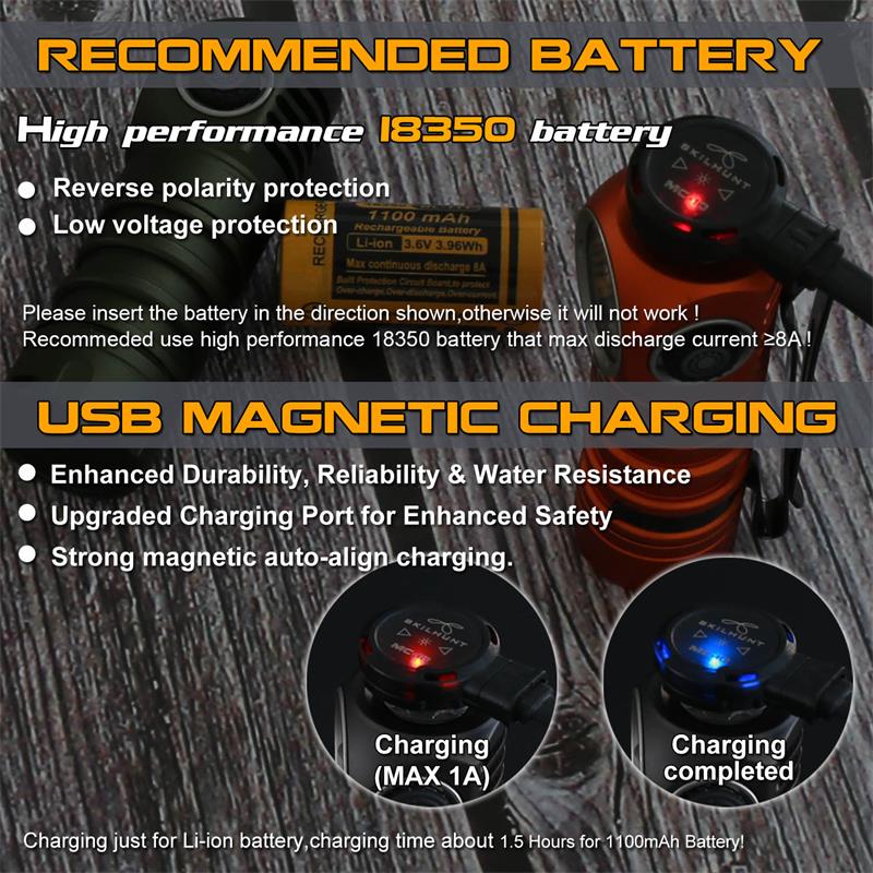 SKILHUNT H200 Mini 18350 USB magnetic charging LED Headlamp