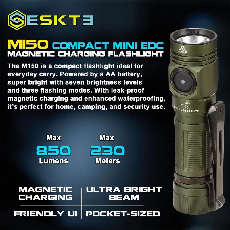 SKILHUNT M150 V4 EDC AA 14500 USB magnetic charging flashlight