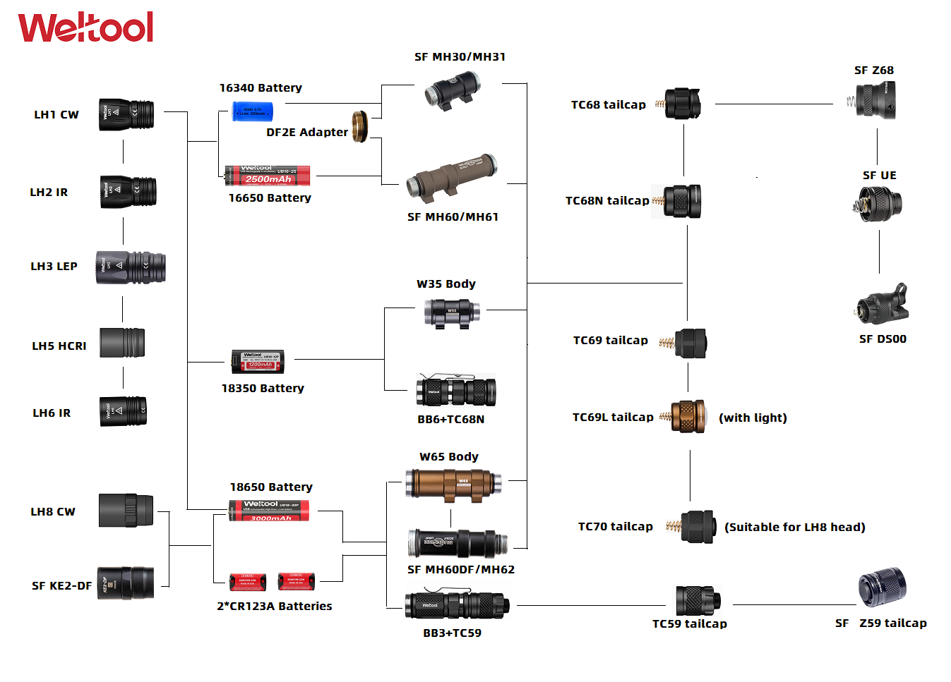 Weltool LH3 LEP Focus far shot light head single gear 335 lumens 190,000 Kendra tactics----black