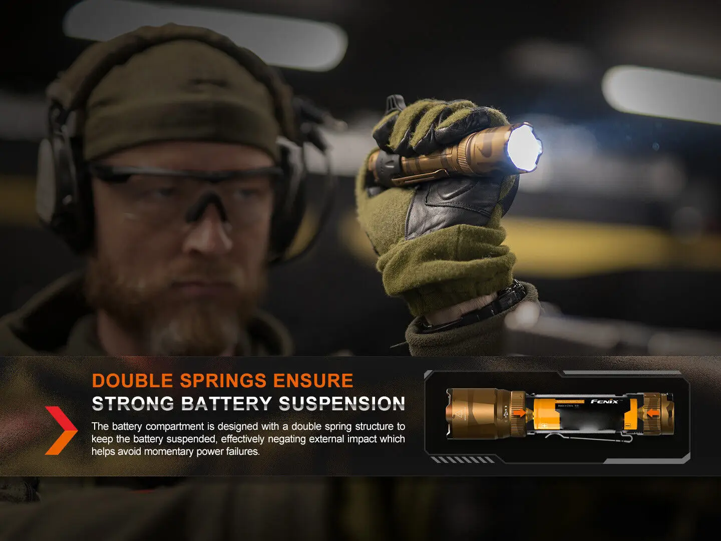 conditions. Additionally, the flashlight is equipped with double springs on both sides for enhanced reliability and dependability. The TK20R UE's