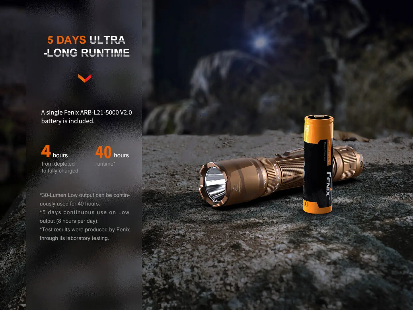 up to five days of continuous use in low mode and can be fully charged in just four hours. Durable and Dependable It also boasts impressive durability
