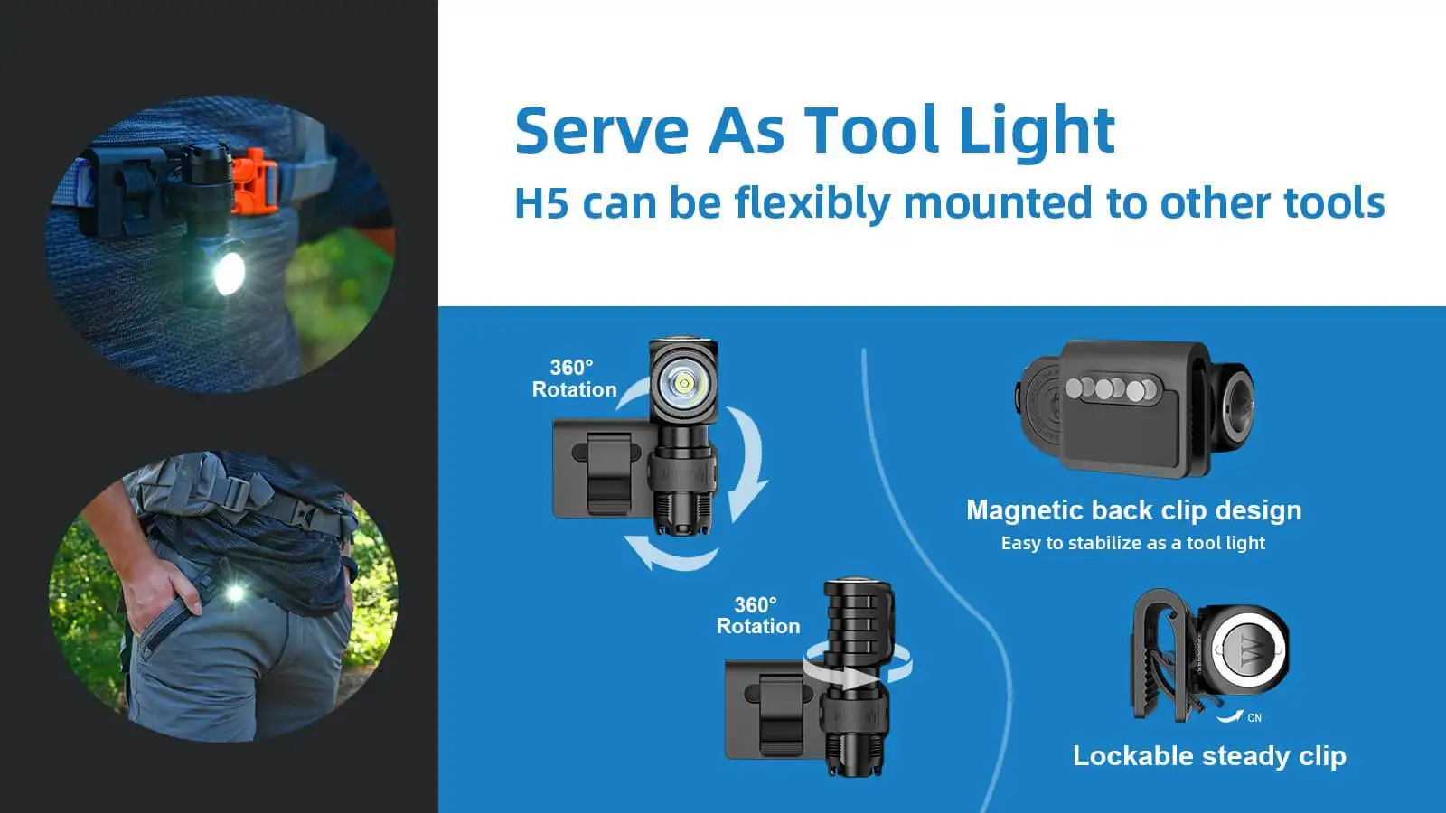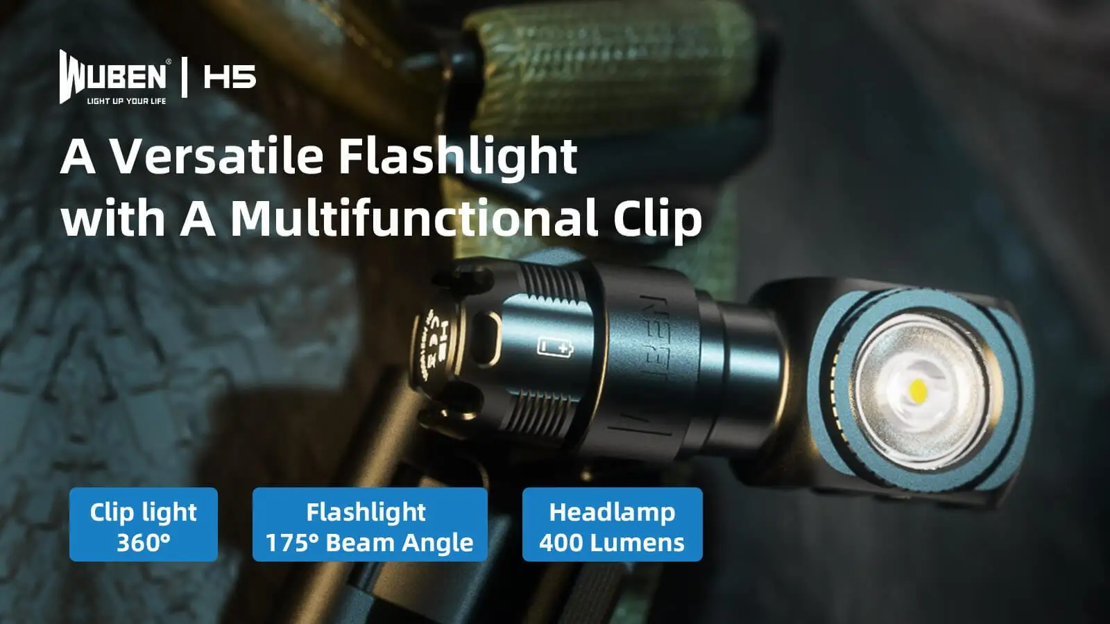 WUBEN H5 Headlight 400Lumens 360° Rotatable 180° Beam Range Waterproof Magnetic LED Headlamp For Outdoor Camping Running Hunting