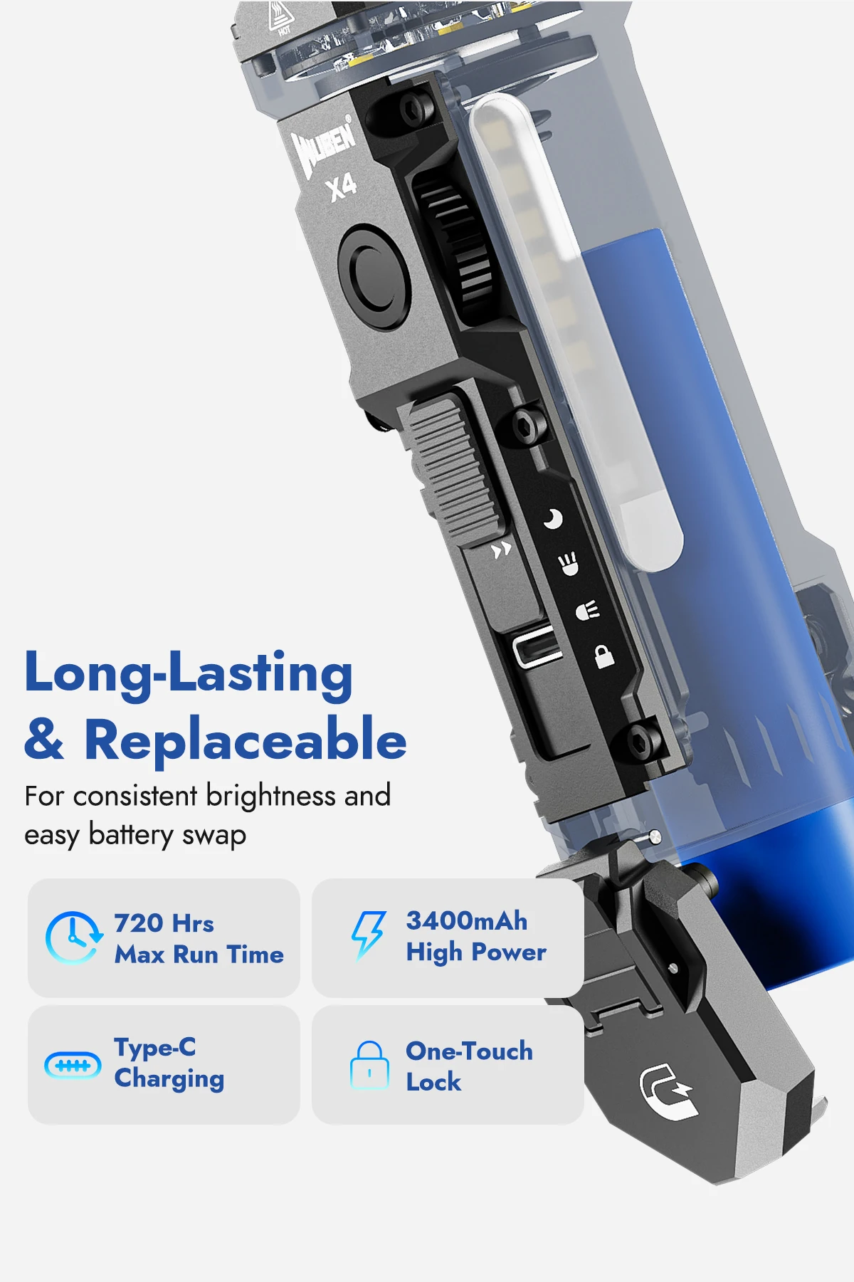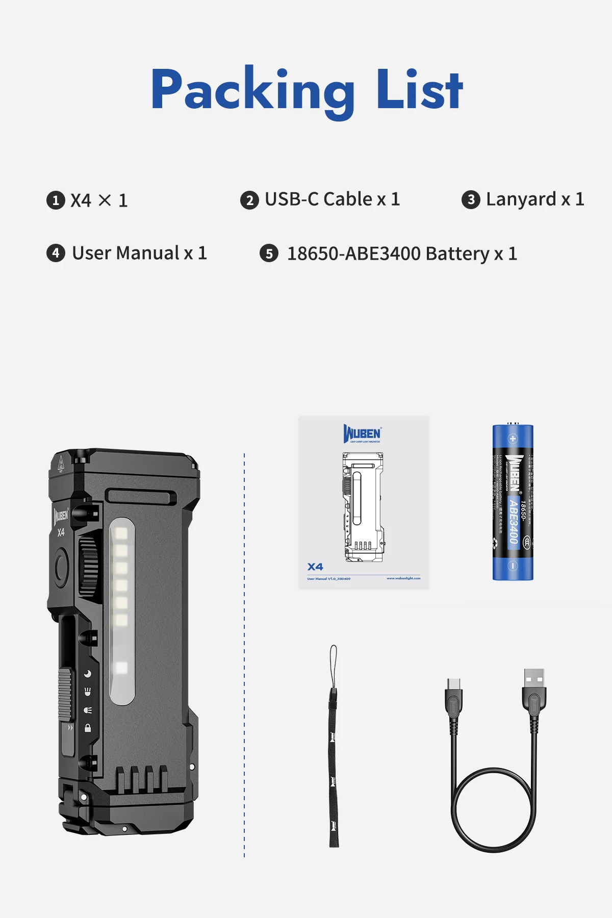 WUBEN X4 EDC Flashlight Max 1500Lumens USB-C Rechargeable With 3400mAh Battery CompacT-Sized Protabled Keychian Light